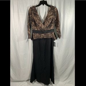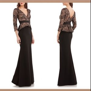 NEW $288 JS COLLECTIONS Lace & Crepe Peplum Gown Black/Nude [SZ 6 ]