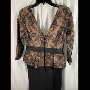 NEW $288 JS COLLECTIONS Lace & Crepe Peplum Gown Black/Nude [SZ 6 ] #e840