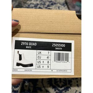New. No box. 2976 SMOOTH LEATHER PLATFORM CHELSEA BOOTS WHITE. Size US WOMENS 9, US MENS 8, UK7, EU41. The first Dr. Martens Chelsea boot was produced in the 70s, but the actual style dates back to the Victorian era. Today, the 2976 Chelsea boot is a slick, uncompromisingly fashion-forward look for all genders — and with a sure fit and an easy-on, easy-off elasticized gusset, it's a versatile boot that works with everything.