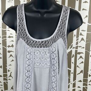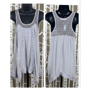 NEW $29 Boho Grey Embroidered Trim Shark Bite Long Line Tank Top sz S