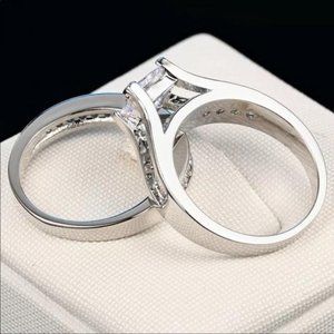 NEW 2PC/SET 925 STERLING SILVER DIAMOND RING