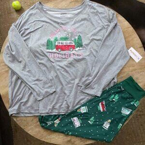 NEW 2Pc 2X 18W-20W Women's Soft VW Bus Christmas Pajamas w/ Pockets