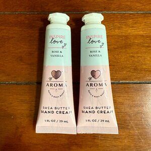 NEW 2-Pc AROMA Bath & Body Works INSPIRE LOVE ROSE & VANILLA Shea Butter Hand Cream 1oz Each
