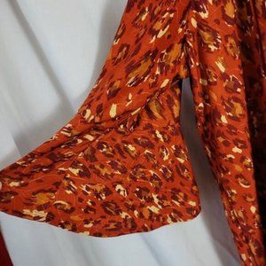 NEW 2X NY Collection pullover blouse flowy bell sleeves animal print NWT PRETTY