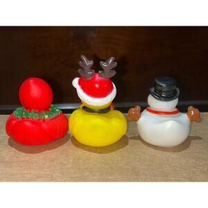 Spread some holiday cheer with this adorable set of three new Christmas-themed rubber ducks! You'll receive a reindeer, a snowman, and a cute redbird, all ready to bring smiles.
