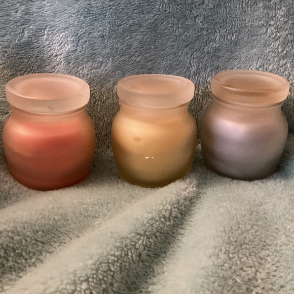 These 3 candles are all brand new and have never been used. They are made by Hanna’s Candle Co out of Fayetteville AR. The scents of these three candles are LEMON CHIFFON, SPICED PLUM, AND PINK GRAPEFRUIT. The lemon chiffon jar has a slight defect (please see first picture). These candles smell wonderful! I will be listing 3 others also.