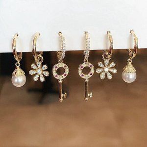 *NEW [3 Pairs] 925 Sterling Silver Hoop Earrings L