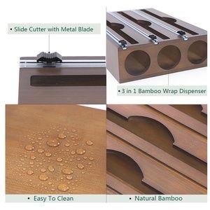 NEW 3 in 1 Bamboo Wrap Dispenser with Cutter Organizer Fits 12" Rolls