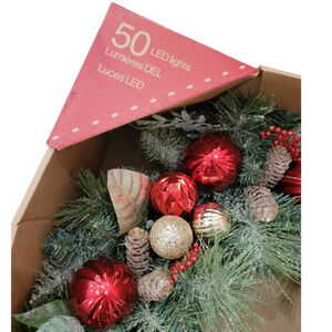 NEW 30" Pre-Lit Deco Wreath Holiday Christmas Door Hanging Battery Operated