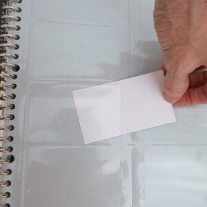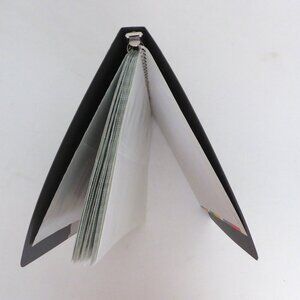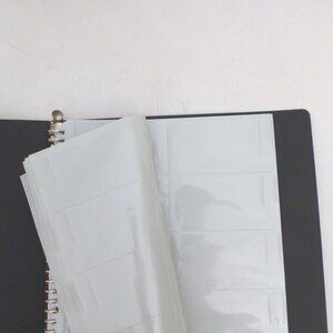 New, never used for its purpose, Kokuyo brand, Japan, Business / Name card holder metal ringed binder. The plastic sleeves can hold 300 cards measuring 2” x 3.5”. The binder rings opens so you can remove the pages. The gray binder cover is soft sided. The spin has plastic pocket with removable paper panel to replace for labeling and organizing. (See photos for details) I am the original owner. It has been in climate controlled storage since purchased in Japan. Comes from a pet and smoke free home.