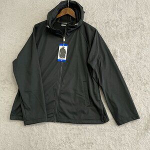 NEW 32 Degrees Women's L Black Hooded Softshell Windbreaker Jacket Full Zip
