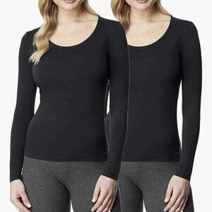 NEW 32 Degrees Women's M Heat Long Sleeve Scoop Neck 2 Pack Black