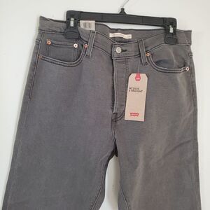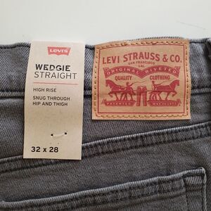 NEW 32 LEVI'S high rise WEDGIE STRAIGHT LEG gray black JEANS SHORT 28 NWT