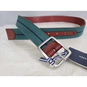 NEW - 32 Vineyard Vines Leather Canvas Webbing REVERSIBLE Brown Green Navy Blue