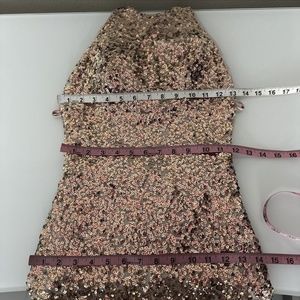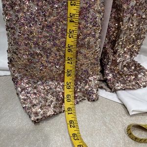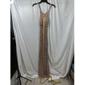 NEW $320 Betsy & Adam [ 0 ] Halter Sequined Lace Up Back Gown Pink/Purple #G1161
