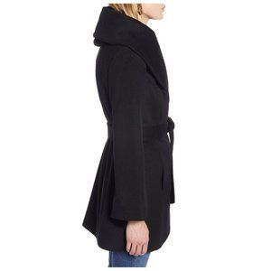 NEW $350 HALOGEN TAHARI Wool Blend Wrap Coat black warm winter size S