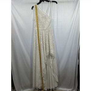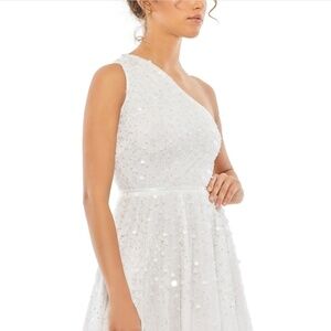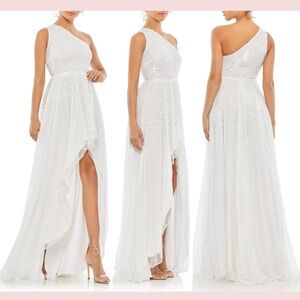 NEW $398 Mac Duggal [ 2 ] Embellished One Shoulder High-Low Gown White