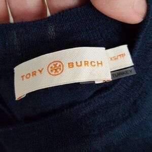 NEW $398 Tory Burch Cashmere Iberia Long Sleeve Pullover Sweater Navy Blue XS