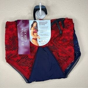 NEW 3X ADORE ME CHELSEY THONG SET BLUE RED LACE GIFT PLUS LINGERIE