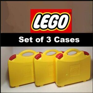 NEW 3X LEGO Yellow Plastic Carrying Carry Case Storage Box Bundle w Handle Divid