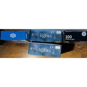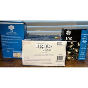 Get ready to light up your home with these brand new indoor/outdoor lights! This set includes 4 boxes of lights. 3 boxes contain 100 count lights and 1 box contains 50 count lights. They feature a clear color and green wire that blends seamlessly with foliage. These lights are energy-saving, helping you reduce your electricity bill. Plus, they can be connected end-to-end for easy installation and customization.