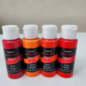 NEW 4 Caliart Acrylic Paint Set Orange Red colors 59ml, 2oz each Art Craft Paints Painting Kit Art Supplies