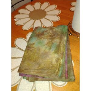 There are 4 napkins in this set. Each one is hand-dyed and measures 22" x 24". Made by Wendy Richardson of QT Studio. They are still tied together with the tag and never been used. 'Vintage Textiles in Colour' line.