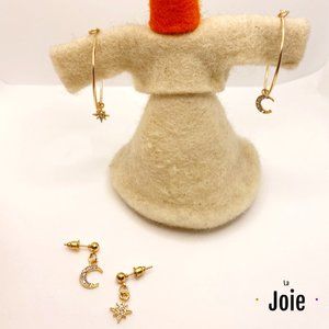 NEW 4 Pieces Rhinestone Star & Moon Earring Set in package!