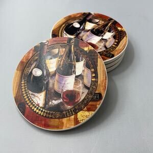 Set of Wine Coasters, Absorbent Stone with Corked Back