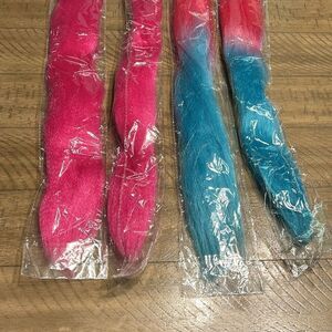 New in package, never used. One was taken out of the package and put back but never used. Smoke free . Price includes all four. They are approximately 26 inches in length. Have a elastic hair tie at the top.