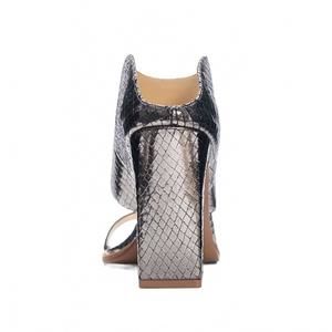 Step into the spotlight, designed for glamorous cocktail parties and featuring a bold Pewter Snake color. Crafted from luxurious leather with a metallic embossed finish. Boast a 4-inch block heel and a sophisticated open-toe silhouette. Double-band vamp and wide heel provide support and comfort, making them an ideal choice for high-heel enthusiasts. Elevate your 90s fashion-inspired ensemble this spring with these striking slip-on sandals.