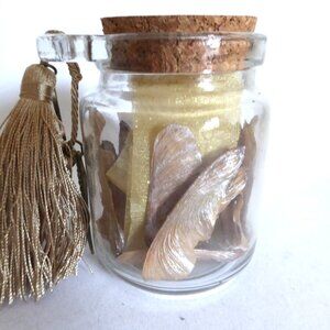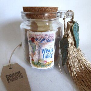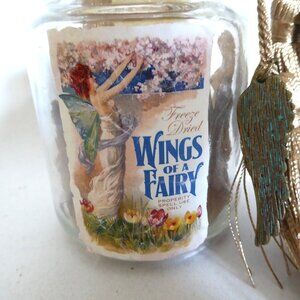 New, never displayed, “Freeze Dried Wings of a Fairy” apothecary glass bottle / jar. Created by “Cradle to Grave Curiosities. The inside is filled with iridescent painted pince cone seeds that look like wings, to give a creepy, mad scientist vibe. It has added tassels with copper metal wing charms attached. This was acquired from an Oddities convention. A talented artisan was selling their spectacular creations in their booth. Perfect for Halloween decor or everyday. It is right out of a Harry Potter film set! This item has never been displayed. (See photos for details) I am the original owner. It has been in climate controlled storage. Comes from a pet and smoke free home.