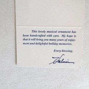New in box, Valerie Parr Hill QVC boutique brand, porcelain, musical Christmas egg ornament. Only taken out of the box to shoot photos. IMPORTANT: The batteries supplied corroded in their packet. You will need to purchase 2 (two) CR2032 3 Volt cell batteries to get the music to play. (See photos for details) I am the original owner. It has been in climate controlled storage since acquired. Comes from a pet and smoke free home.