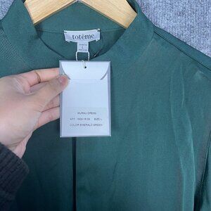 NEW $460 TOTÊME Murau Belted Dress Emerald Green Sz Large Ling Sleeve Classic