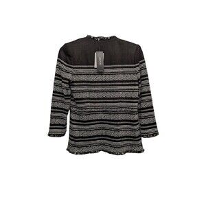 This elegant jacket is perfect for any occasion, with its unique striped pattern and frayed edges that add a touch of sophistication to your outfit. The Misook brand is known for its attention to detail and quality craftsmanship, ensuring that this jacket is both durable and fashionable.