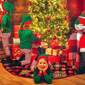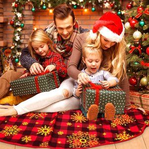 SIZE: buffalo plaid Christmas tree skirt measures 48 inch in diameter, suitable for full-size Christmas trees. The Christmas Tree rug is big enough to cover the base of Vhristmas tree, and keep your floors clean from pine needles or tree sap.