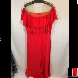 NEW $488 Tadashi Shoji Karlie Off-Shoulder Crepe Gown Red [PLUS 22W 22Q ] #G401