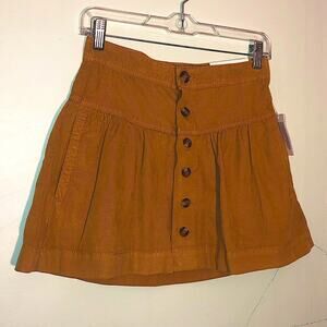 NEW $49 American Eagle Corduroy Hi-Rise Ruffle Mini Skirt brown tan size 00 24w