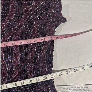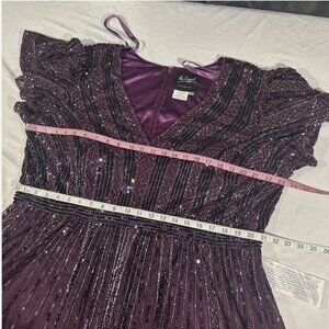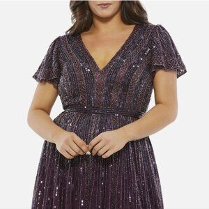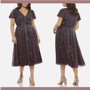 NEW $498 Mac Duggal [ PLUS 24W ] Embellished V-Neck Midi Dress Aubergine #Q473