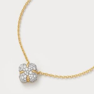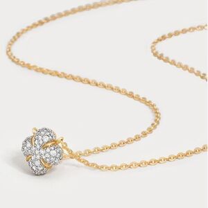 NEW 4 LEAF CLOVER FLOWER CZ GOLD PENDANT NECKLACE