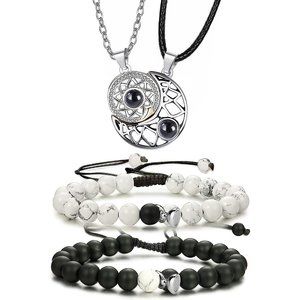 NEW 4Pcs Couples Bracelet Necklace Set Matching His and Hers Promise Lov…