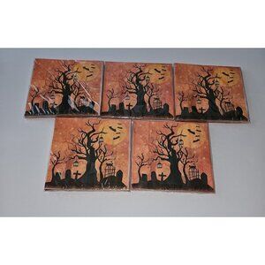 NEW 5 Packages Full Moon Halloween Napkins Lot Graveyard Tree Stars Bats Orange