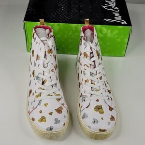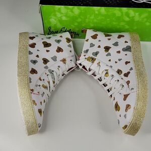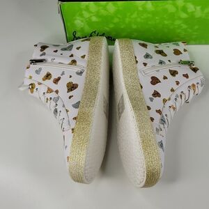 NEW 5 SAM EDELMAN silver gold HEART ZIP SLIP ON SNEAKERS SHOES HEARTS 36 NWT