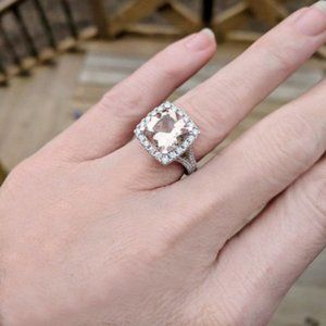 *NEW 5 ct Pink Topaz Diamond Halo Engagement Ring
