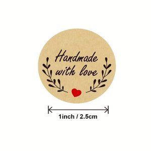 NEW 500pcs/roll Handmade With Love Stickers - Light Brown Kraft Stickers