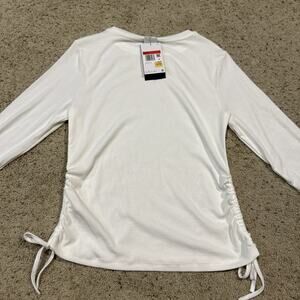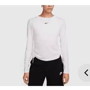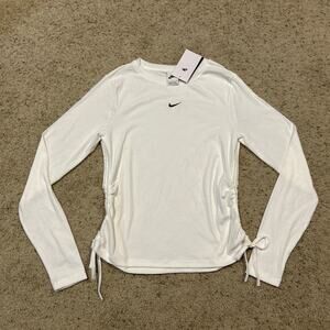 NEW $52 Nike size L Top Ribbed Ruched Sides Long Sleeve White FB717 Q25