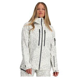 This is a brand new $549 Obermeyer Highlands Shell jacket! It's designed in the limited edition Snow Cat pattern, and it features Toray® Dermizax™ 4-way stretch in a 3-layer shell so it's 100% waterproof!
