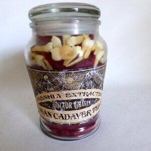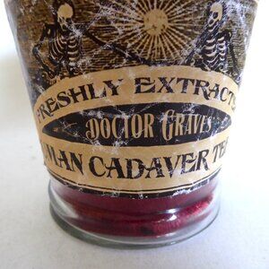 New, never displayed, apothecary bottle label reads: “Doctor Graves, Freshly Extracted, Human Cadaver Teeth”. Created by “Cradle to Grave Curiosities". This was acquired from an Oddities convention. A talented artisan was selling their spectacular creations in their booth. Perfect for Halloween decor or everyday. It is right out of a Harry Potter film set! This item has never been displayed. (See photos for details) I am the original owner. It has been in climate controlled storage. Comes from a pet and smoke free home.