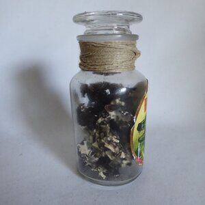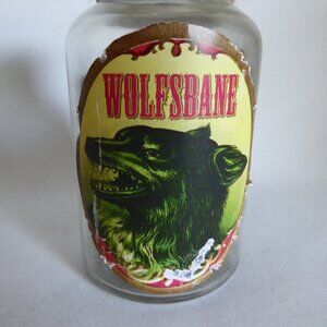 New, never displayed, “Wolfsbane” apothecary glass bottle / jar. Created by “Cradle to Grave Curiosities. The inside is filled with some type of natural materials to give a creepy, mad scientist vibe. This was acquired from an Oddities convention. A talented artisan was selling their spectacular creations in their booth. Perfect for Halloween decor or everyday. This item has never been displayed. (See photos for details) I am the original owner. It has been in climate controlled storage. Comes from a pet and smoke free home.