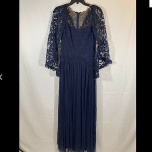 NEW $568 Tadashi Shoji Cove Tulle Cape Gown in Navy Blue [SZ 4 ] #G379